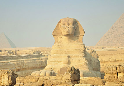 A mythical creature with the head of a human and the body of a lion. The statue facing directly from West to east. Located on the Giza Plateau on the West bank of the Nile of Nile, representing the pharaoh Kharfe.