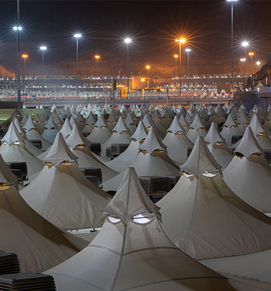 Mina is located at a distance of 5 km to the East of Makkah. During Hajj, pilgrims stay in Mina on the 8th of Dhu al-Hijjah and then on 10th to 13th of Dhu al-Hijjah and perform the rite of pelting jamarat.