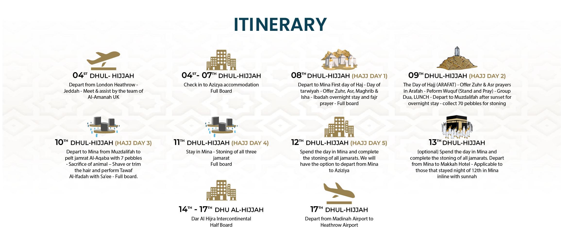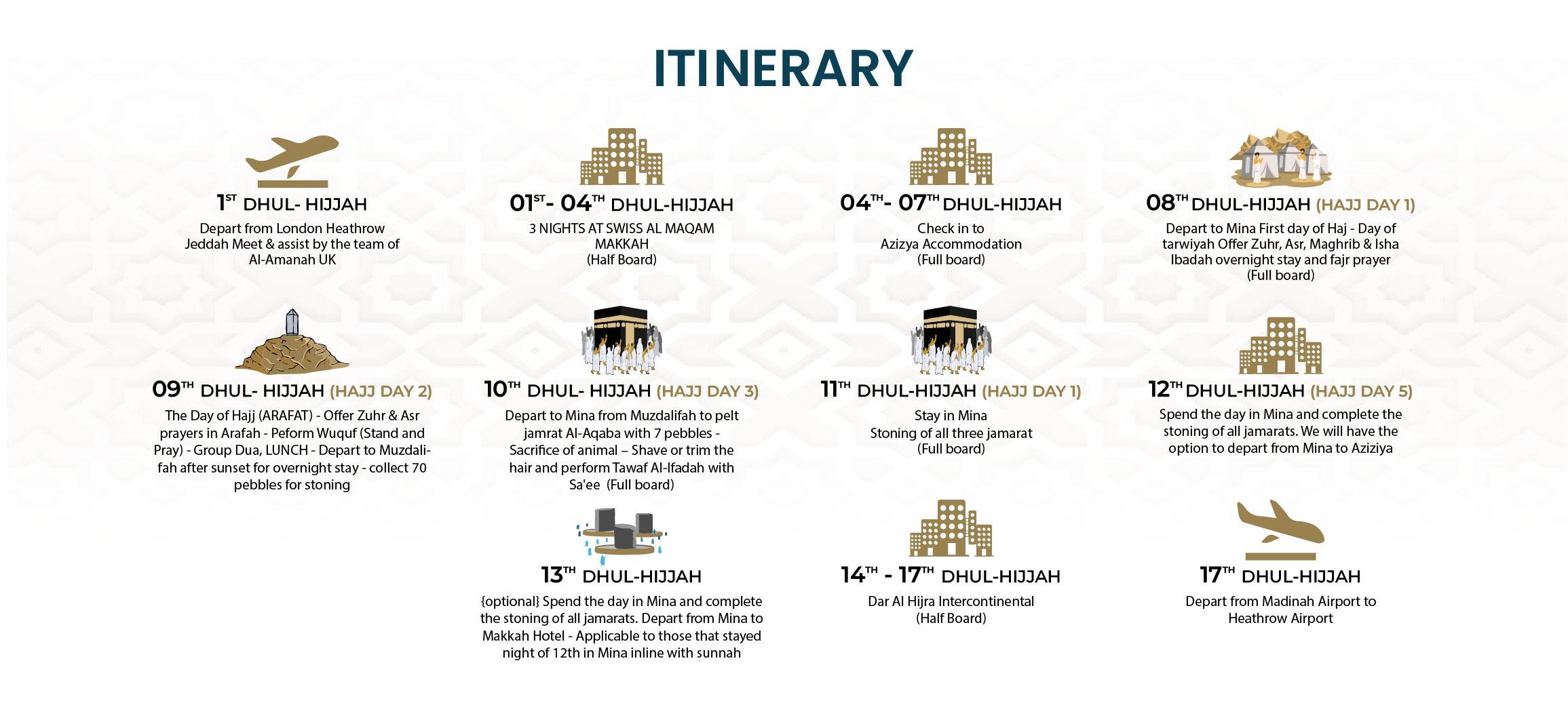 Al-Amanah provides full Ziyarat of the Islamic landmarks in both holy cities of Makkah and Madinah during hajj 2025. Ziyarat are Included in all our hajj packages from UK. Including, 5 star hajj packages 2026, standard hajj packages 2026. All 2 weeks shorter hajj 2026 packages from UK.
