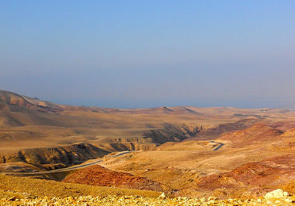 Known asJabal Nībū an elevated ridge located in Jordan, Part of the Abarim mountain range, Mount Nebo where Musa (AS) was granted a view of the Promised Land.The view from the summit provides a panorama of the West Bank across the Jordan River valley. The city of Jericho is usually visible.