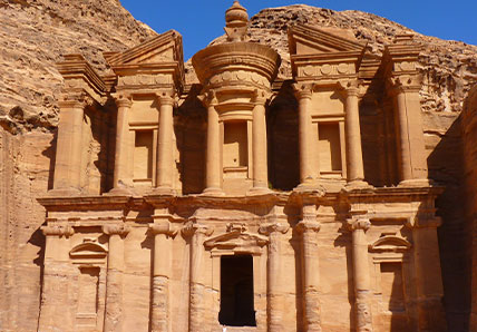 Petra known for its famous archaeological located in Jordan’s southwestern desert. It was the capital of the Nabatean Kingdom. Accessible via canyon called Al Siq, contains tombs and temples carved into pink sandstone cliffs. Also known as Rose City. Al Khazneh, a temple with an ornate, also known as The Treasury. UNESCO World Heritage Site and archaeological marvel. A visit to Petra offers Quranic, historical, and geographical insight.